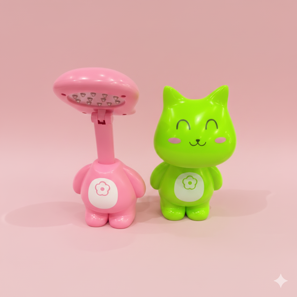 The lamp features two colorful characters – a green cat and a pink bunny – that brighten up any space with their playful charm.